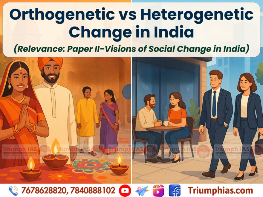 Understanding how societies change is at the heart of sociology. In the Indian context, two processes—orthogenetic change and heterogenetic change—are crucial for analyzing the transformation of traditions, institutions, and social structures. These concepts, introduced by Robert Redfield in his “Great Tradition–Little Tradition” framework, help us explain how India negotiates between continuity and transformation, between the village and the city, and between its own traditions and external influences.